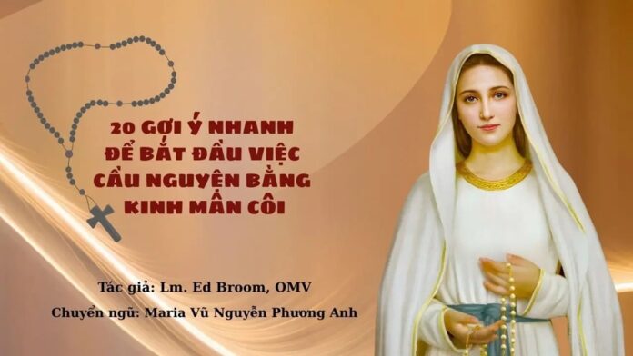 Bây giờ chúng tôi sẽ trình bày một danh sách liệt kê hai mươi gợi ý cụ thể, nhằm khích lệ và động viên tất cả chúng ta cùng cầu nguyện kinh Mân Côi của Đức Trinh Nữ Maria trong suốt quãng đời còn lại của chúng ta. Và chúng tôi hy vọng rằng nhiều người sẽ trở thành những Tông đồ sốt sắng và nhiệt thành của kinh Mân Côi.