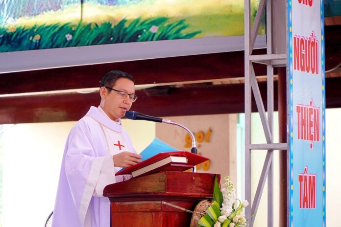 Giảng trong thánh lễ, hướng về việc xây dựng ngôi thánh đường mới, Đức cha chủ tế mời gọi cộng đoàn dân Chúa hãy trở thành “những con người xây dựng”. Bên cạnh việc chú tâm xây dựng ngôi đền thờ vật chất, Đức cha Phêrô cũng mời gọi mỗi người biết đóng góp phần mình để kiến thiết “những ngôi đền thờ thiêng liêng”. Ngôi đền thờ ấy là chính đời sống tâm hồn của mỗi người tín hữu. Đền thờ ấy cũng là Giáo Hội, nơi mà mỗi Kitô hữu là những viên đá sống động để xây dựng nên. Đền thờ ấy cũng chính là Đức Giêsu Kitô. Và để có thể trở nên những “con người xây dựng”, mỗi tín hữu cần biết đi vào bên trong chính mình, trở nên những con người đem lại hòa bình từ trong tâm hồn hầu có thể xây dựng không chỉ những công trình tôn giáo mang tính thiêng liêng nhưng còn là những công trình đem lại lợi ích cho mọi người trong xã hội.
