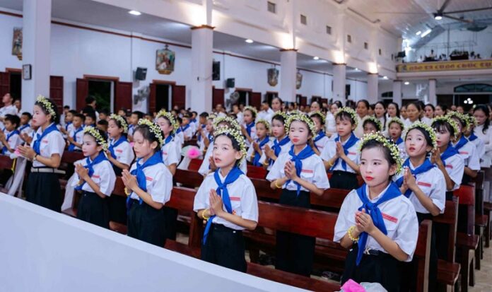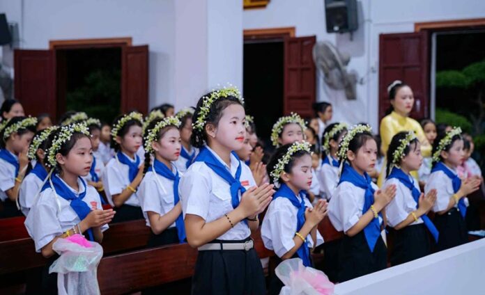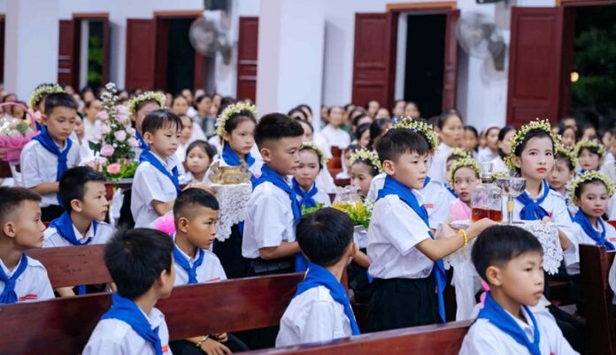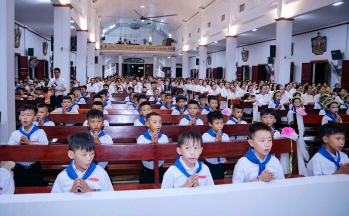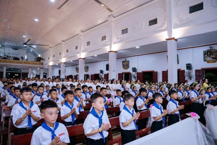 Tối ngày thứ Tư, 13/08/2025, tại nhà thờ Giáo xứ Cự Tân, cộng đoàn nơi đây đã hân hoan quy tụ mừng và tham dự thánh lễ rước lễ lần đầu cho 63 em Thiếu nhi Thánh Thể. Thánh lễ do Cha quản xứ cử hành và giảng lễ, trong bầu khí sốt sắng và trang nghiêm.