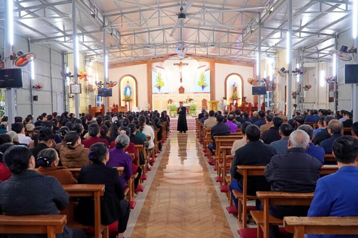 GPVO – Ngày 01/11/2025, tại nhà thờ tạm Giáo xứ chính tòa Xã Đoài, Giáo phận Vinh đã tổ chức ngày hành hương Năm Thánh cấp giáo phận dành cho các Hội đoàn Công Giáo tiến hành đang hiện diện và hoạt động trong giáo phận. Đây là một dịp đặc biệt bởi vừa là thời điểm kết thúc tháng Mười – tháng Mân Côi, cũng là khởi điểm của tháng Mười Một – tháng cầu nguyện cho các tín hữu đã qua đời. Vì nhiều lý do và hạn chế, số lượng tham dự viên của chương trình hành hương chỉ giới hạn trong hai giáo hạt là Xã Đoài và Trang Nứa.