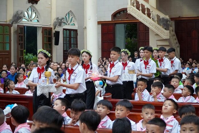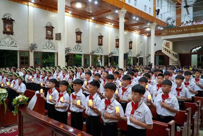 GPVO (16/08/2025) – Vào lúc 19 giờ 30 phút ngày 14/08/2025, giáo xứ Ngọc Liễn hân hoan chào đón Đức Giám mục giáo phận Anphong Nguyễn Hữu Long viếng thăm và cử hành thánh lễ ban bí tích Thêm Sức cho 65 thiếu niên trong giáo xứ. Đồng tế và hiệp dâng thánh lễ có cha quản xứ Giuse Nguyễn Văn Lượng, cha G.B. Nguyễn Quốc Tuấn, quý tu sĩ cùng cộng đoàn dân Chúa.