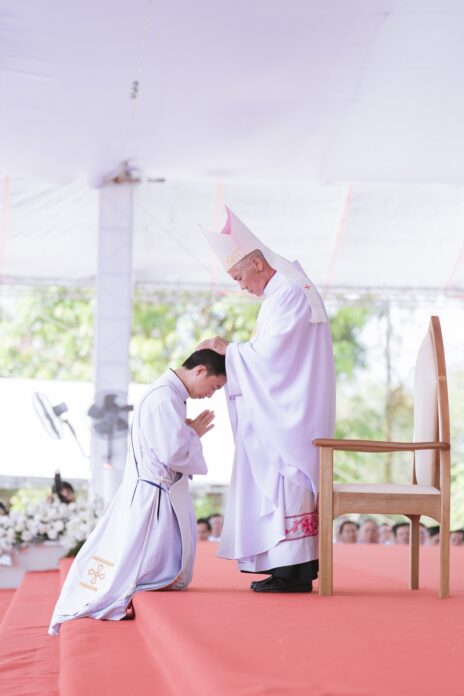 Sau nghi thức này, quý cha Tổng Đại diện, Đức ông Phêrô cùng quý cha đồng tế lần lượt tiến lên và đặt tay trên các tân chức, thể hiện sự hiệp thông và đón nhận những người anh em mới vào gia đình linh mục của giáo phận.