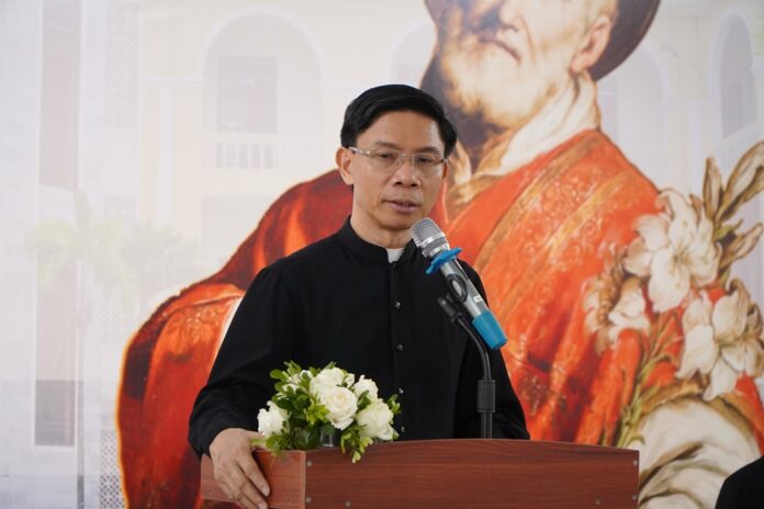 Mở đầu buổi lễ, cha JB. Nguyễn Kim Đồng, Giám đốc Tiền Chủng viện, đã công bố diễn văn khai giảng năm học mới. Trong bài diễn văn, cha gợi lên mối liên kết bối cảnh xã hội hiện đại, thời đại của trí tuệ nhân tạo (AI), với sứ mạng đào tạo ơn gọi linh mục hôm nay.