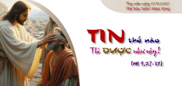 Hành trình đức tin không phải là theo đuổi một lý tưởng hay lý thuyết trừu tượng, mà là một Con Đường – Đạo, được khắc họa sống động qua những cuộc gặp gỡ cụ thể với Thiên Chúa nơi Đức Giêsu Kitô. Câu chuyện Đức Giêsu chữa lành hai người mù trong bài Tin Mừng hôm nay là một bức tranh rõ nét nhất về mối liên hệ mật thiết giữa lòng tin của con người và quyền năng cứu độ của Thiên Chúa. “Các anh tin thế nào thì được như vậy!” (Mt 9,29) như một lời mời gọi tuyên xưng Đức tin, một lời đảm bảo chắc chắn cho niềm hi vọng của mọi người tin và trao đặt niềm trông cậy vào Đấng là Cha giàu Lòng Thương Xót.